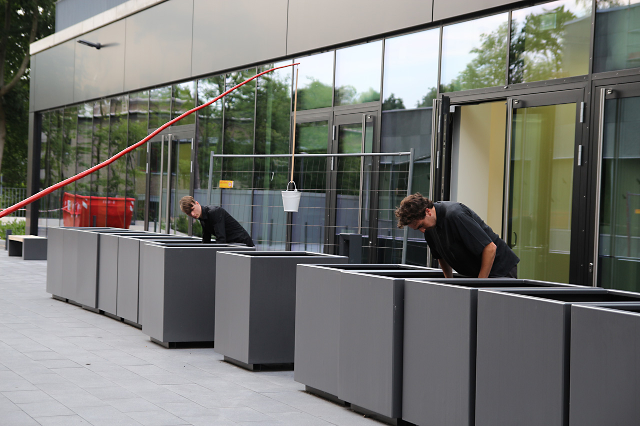 Der Anbau auf dem rückwärtigen Gelände der Kreisverwaltung hat zusätzliche Flächen im Innen- wie im Außenbereich geschaffen, die erstmals mit „Zeichen setzen“ genutzt werden.
